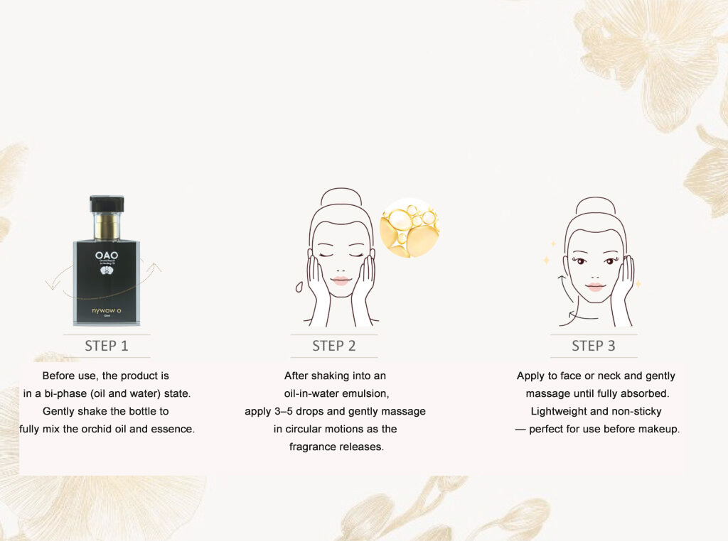 A perfect encounter between Orchid Oil and Orchid Active Essence. Shake well before each use to blend the dual-phase orchid oil and precious active essence into a crystalline oil-in-water emulsion. This dual-action formula effortlessly delivers active ingredients into the skin, providing deep hydration and nourishment, layer by layer, for a vibrant and radiant glow.
